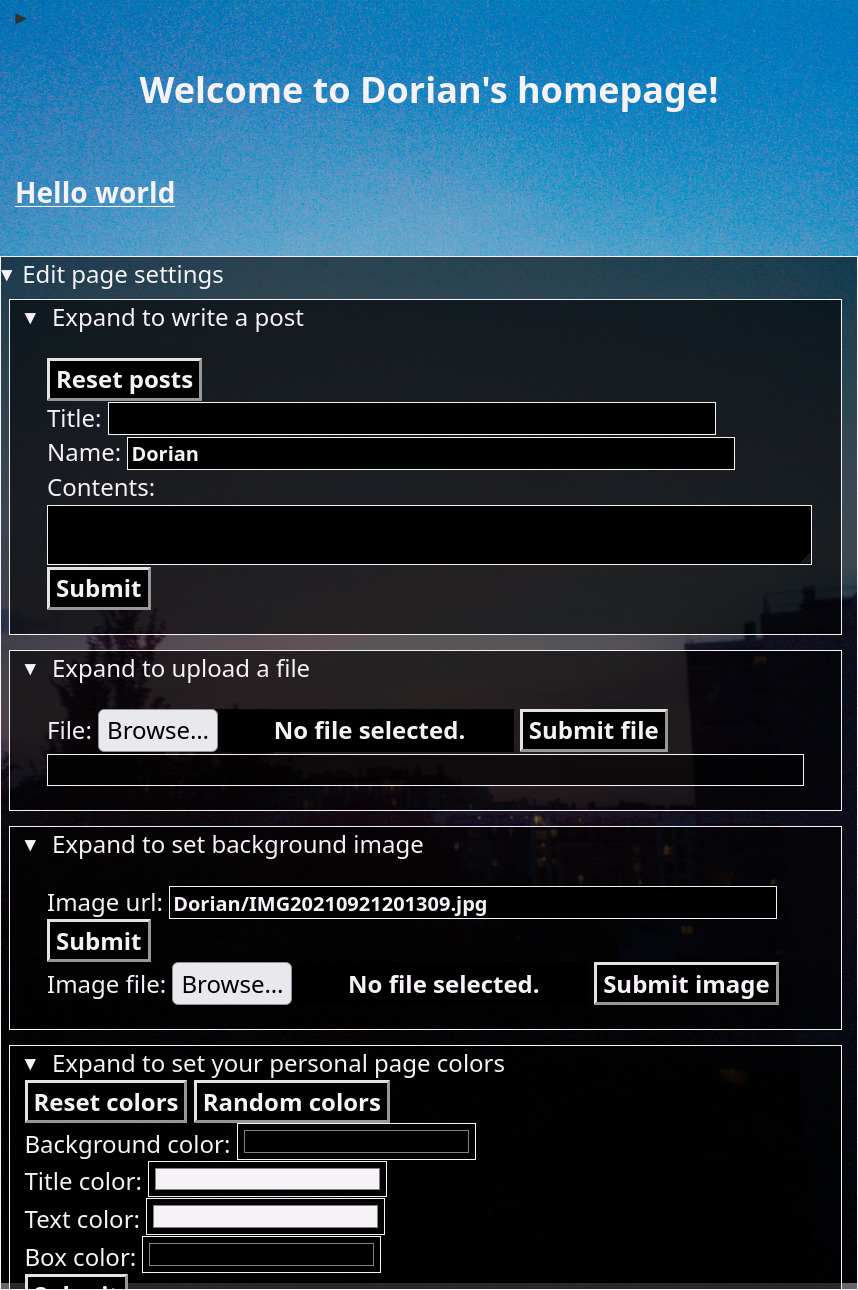 The user can perform many tasks from the site including creating a profile, customizing the background image and colors of their profile, upload files or images to their profile and creating posts under their profile.