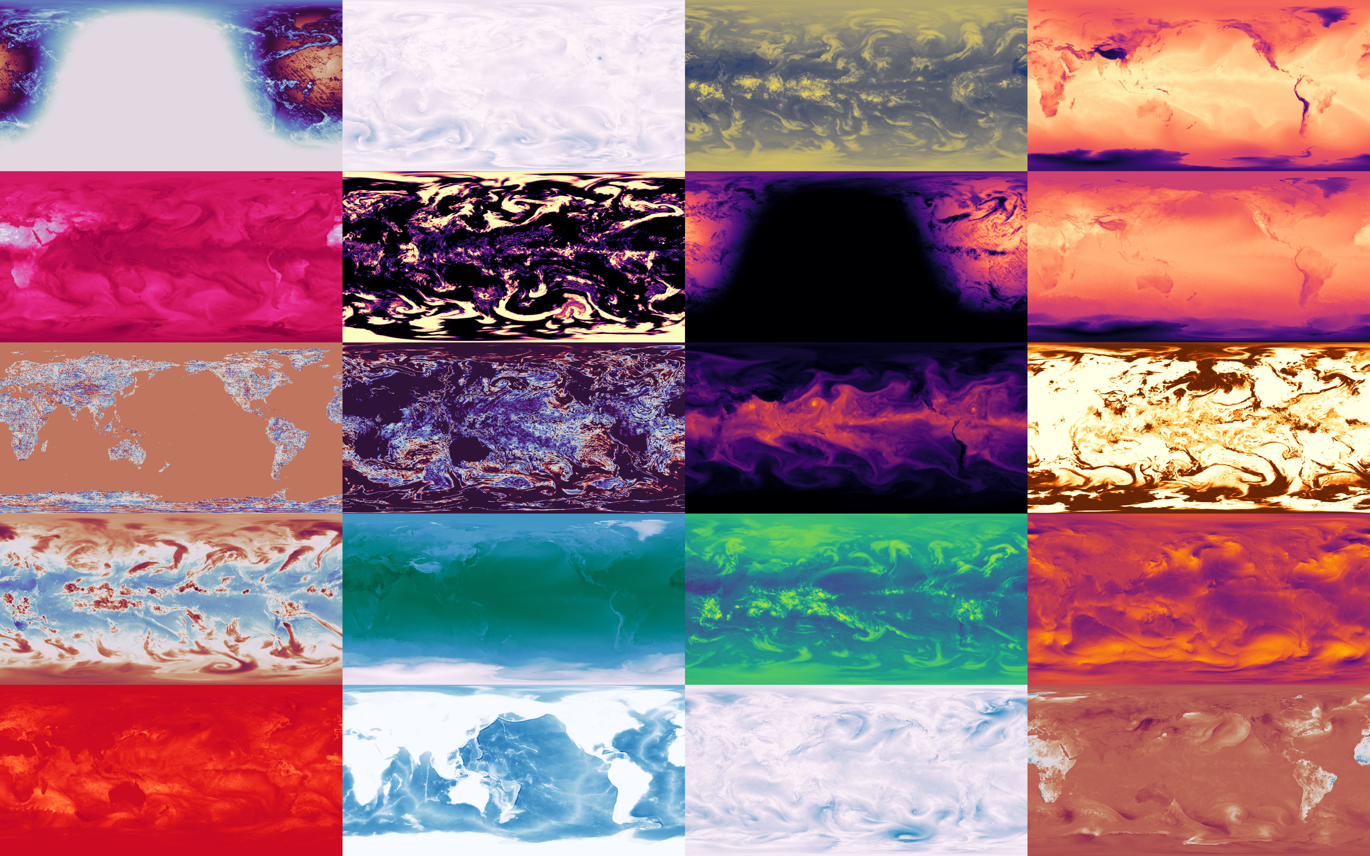Some climate visualizations I made from a variety of climate forecasting and reanalysis datasets coming from europe's ERA5 and the US's NOAA. I started out by downloading any random files I could find and randomly plotting variables to see what would happen. This then grew to generating smooth timelapses of how these variables behave over time.